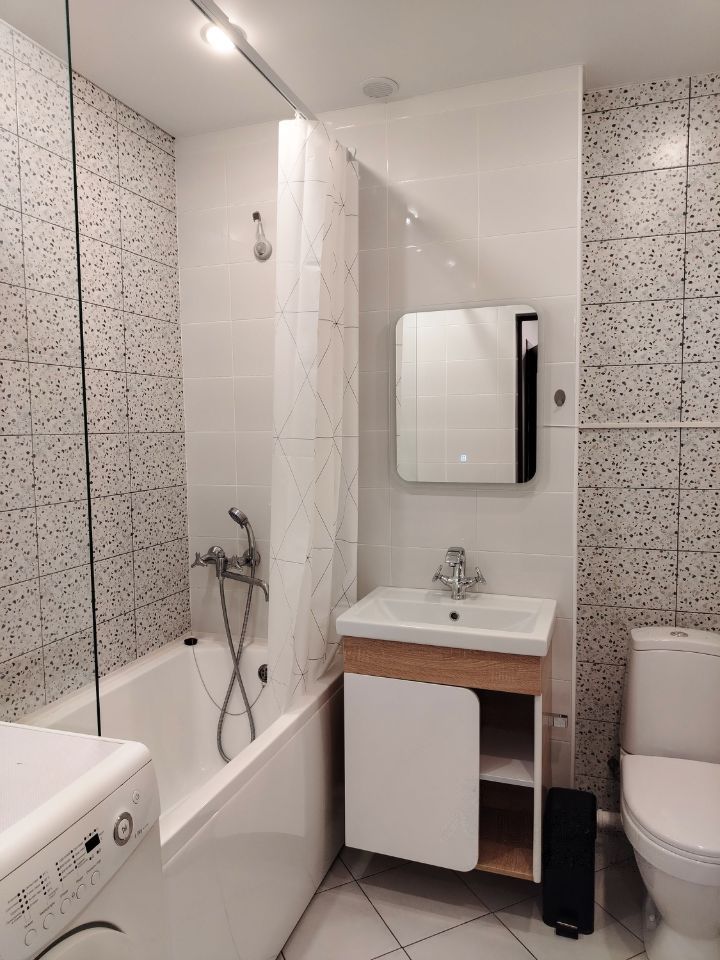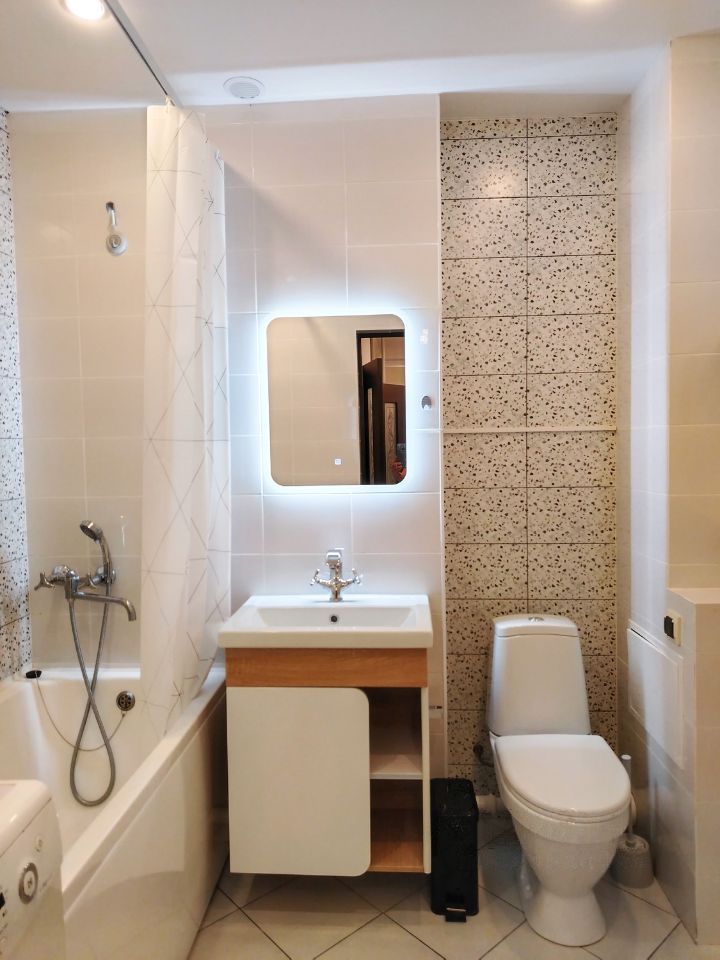 В квартире есть вся необходимая мебель. Из техники: кондиционер, холодильник, стиральная машина, микроволнов...